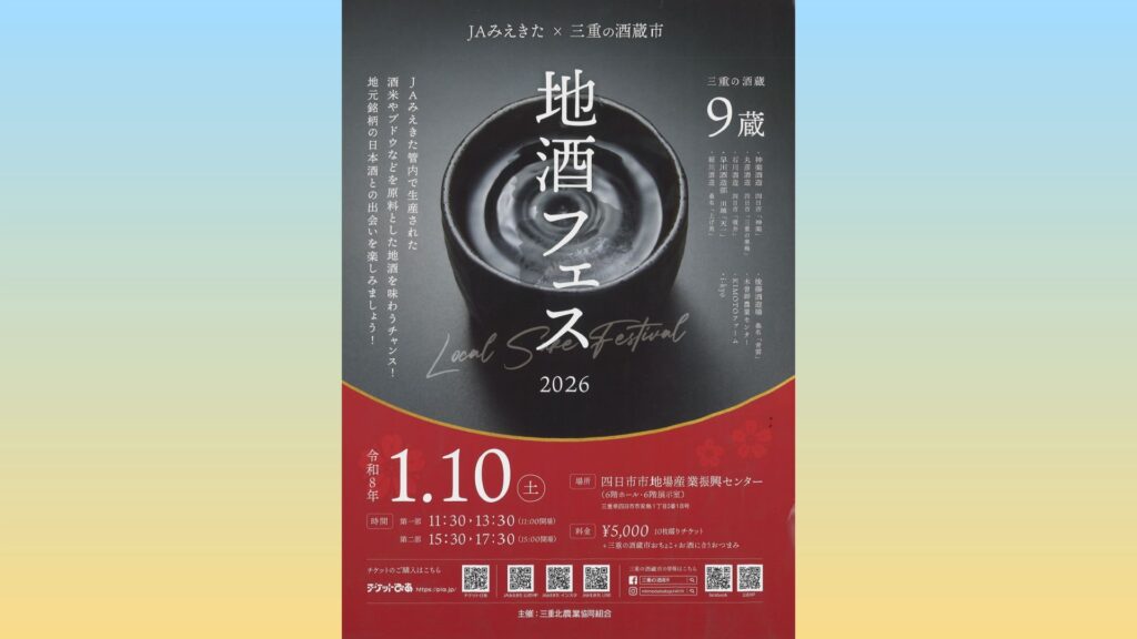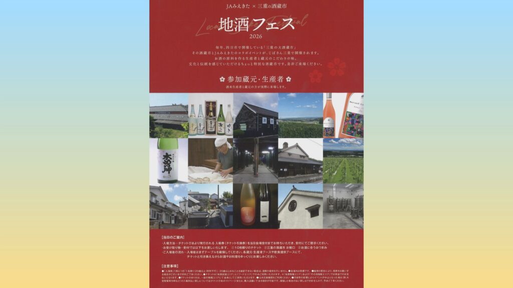 四日市市で三重北農業協同組合が主催の「地酒フェス2026」が開催されます。