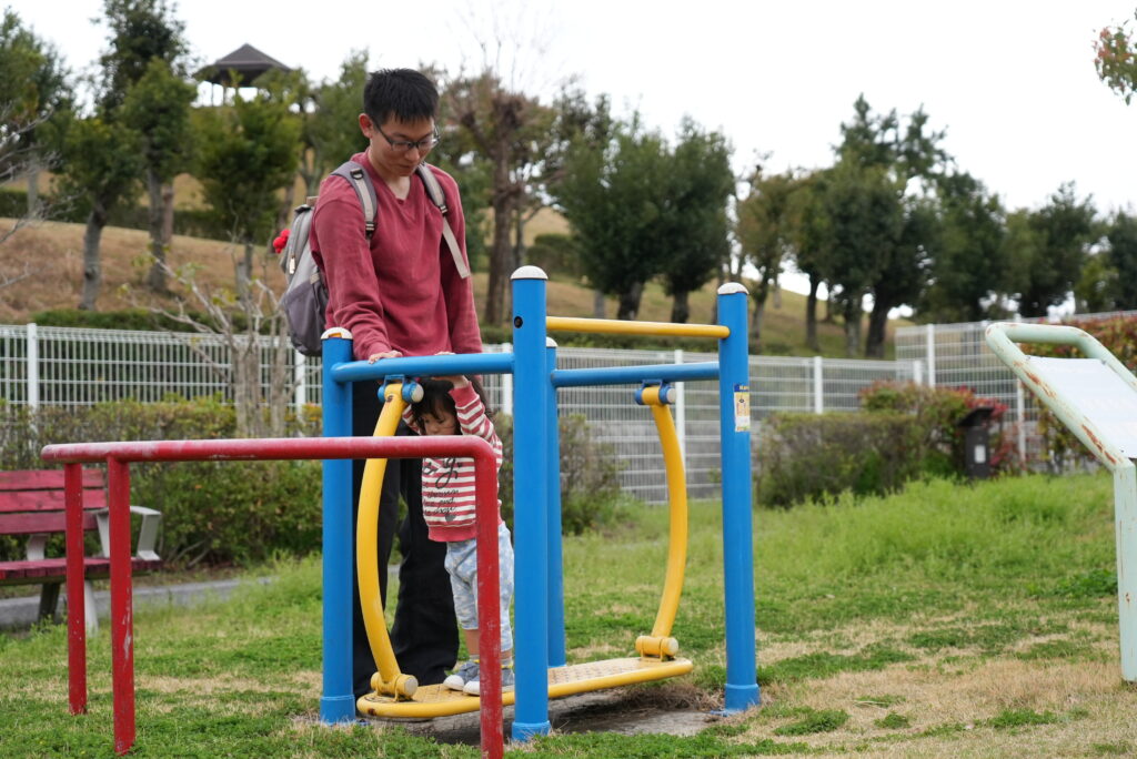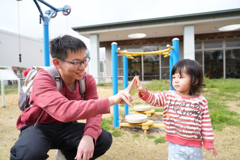 お父さんに見守られながら遊ぶ子供たちの姿が見られました。