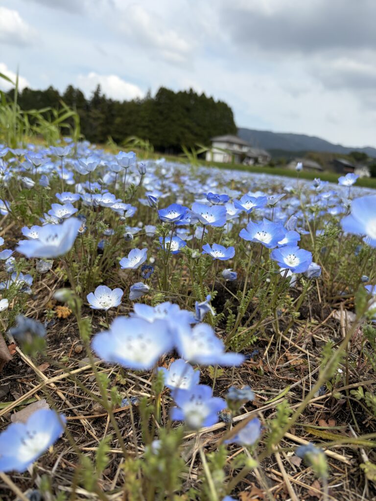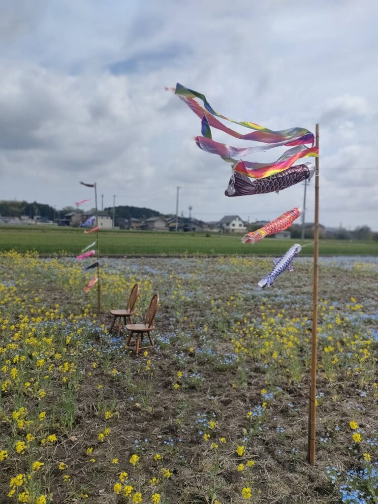いなべ市役所すぐそばにあるネモフィラ畑でも、こいのぼりが泳いでいます。