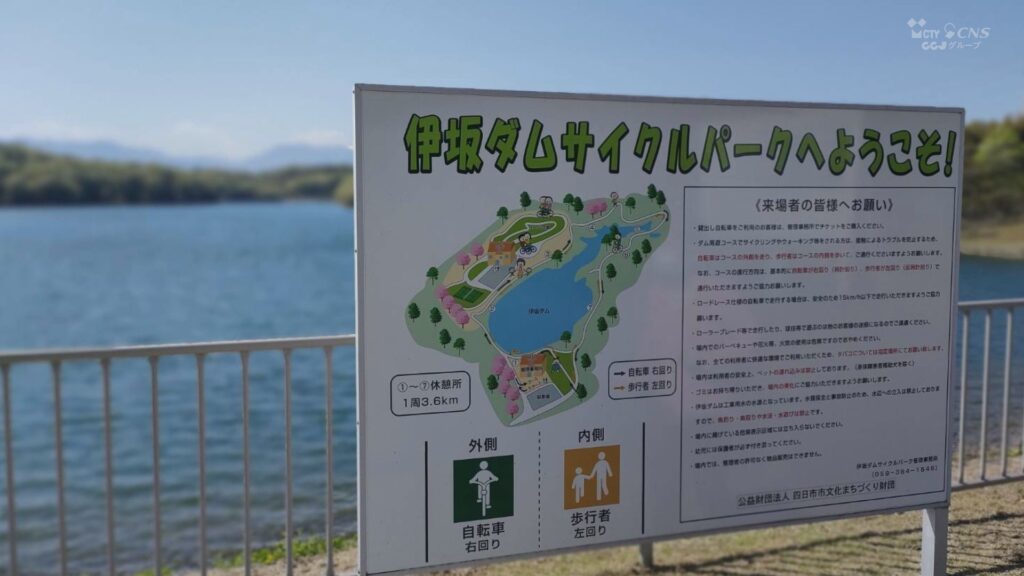 伊坂ダムは、ウォーキングやランニングにもぴったりです。