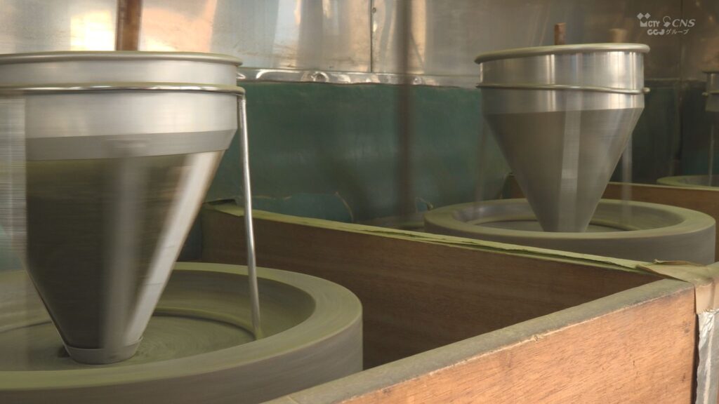 四日市市中部の「位田茶舗」では、石臼で抹茶を挽いています。